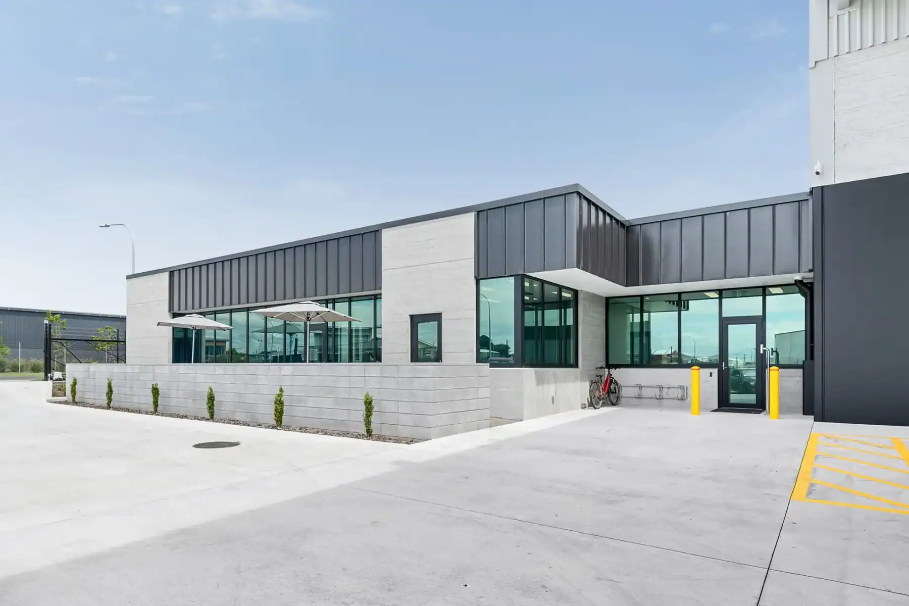 Ultimate Engineered Concrete supplied Precast Boundary Wall Panels including the featured Woodgrain panels to front office.